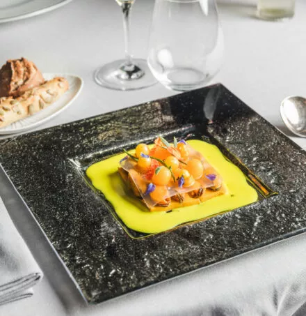 Moules Morisseau en voile de verjus, butternut et raisins confits